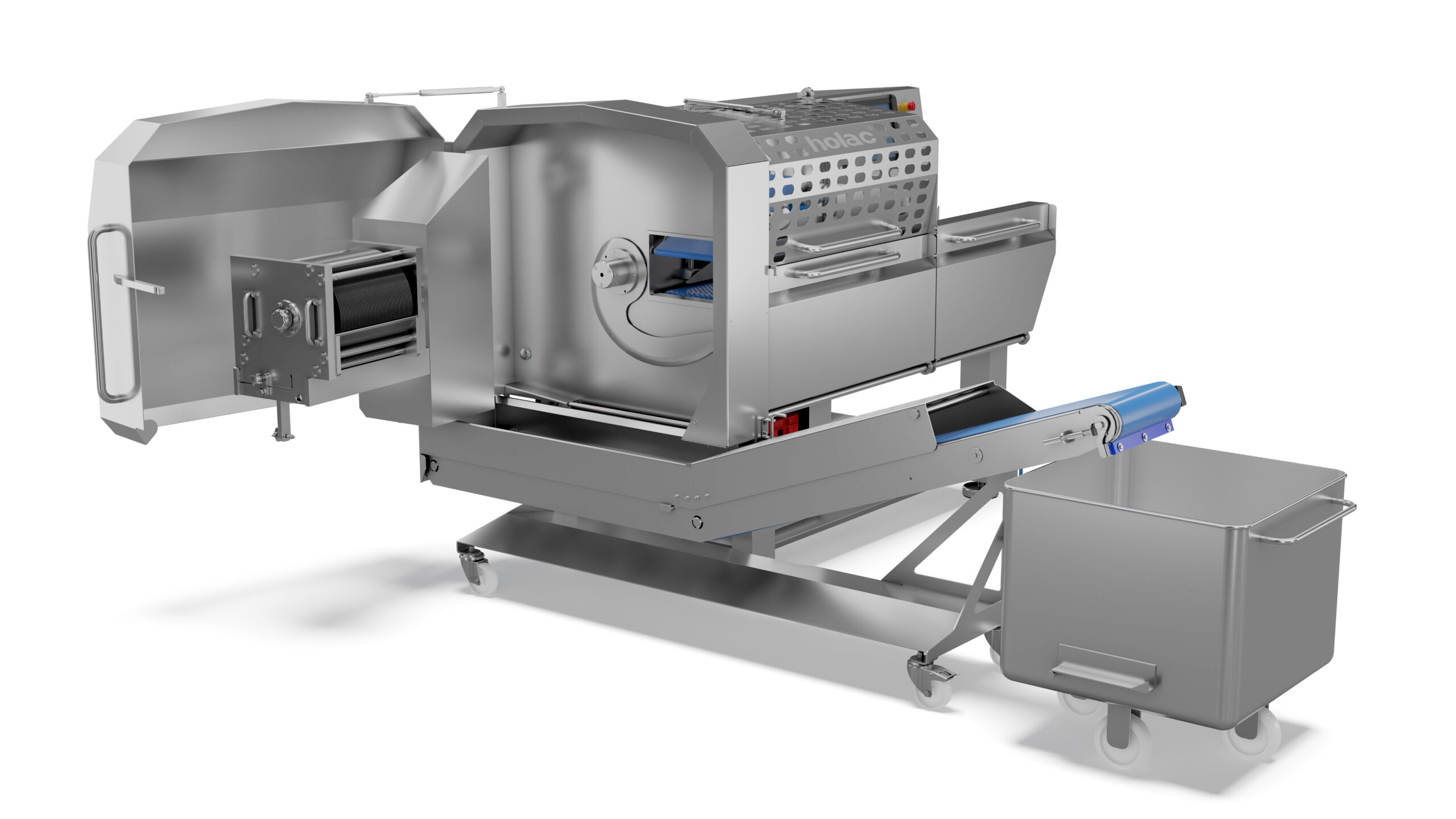 ciągły posuw produktu przez co może być stosowana jako część całej linii produkcyjnej jako wstępne lub główne urządzenie do cięcia mięsa lub sera.
